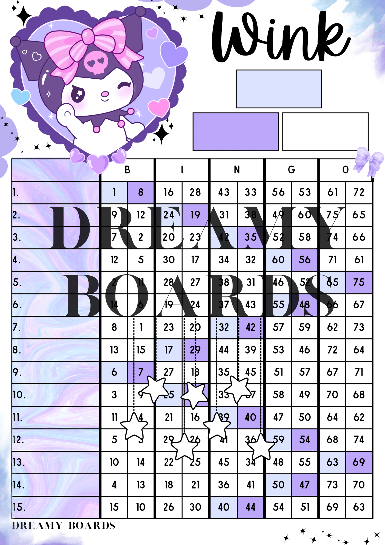 Printable bingo board.