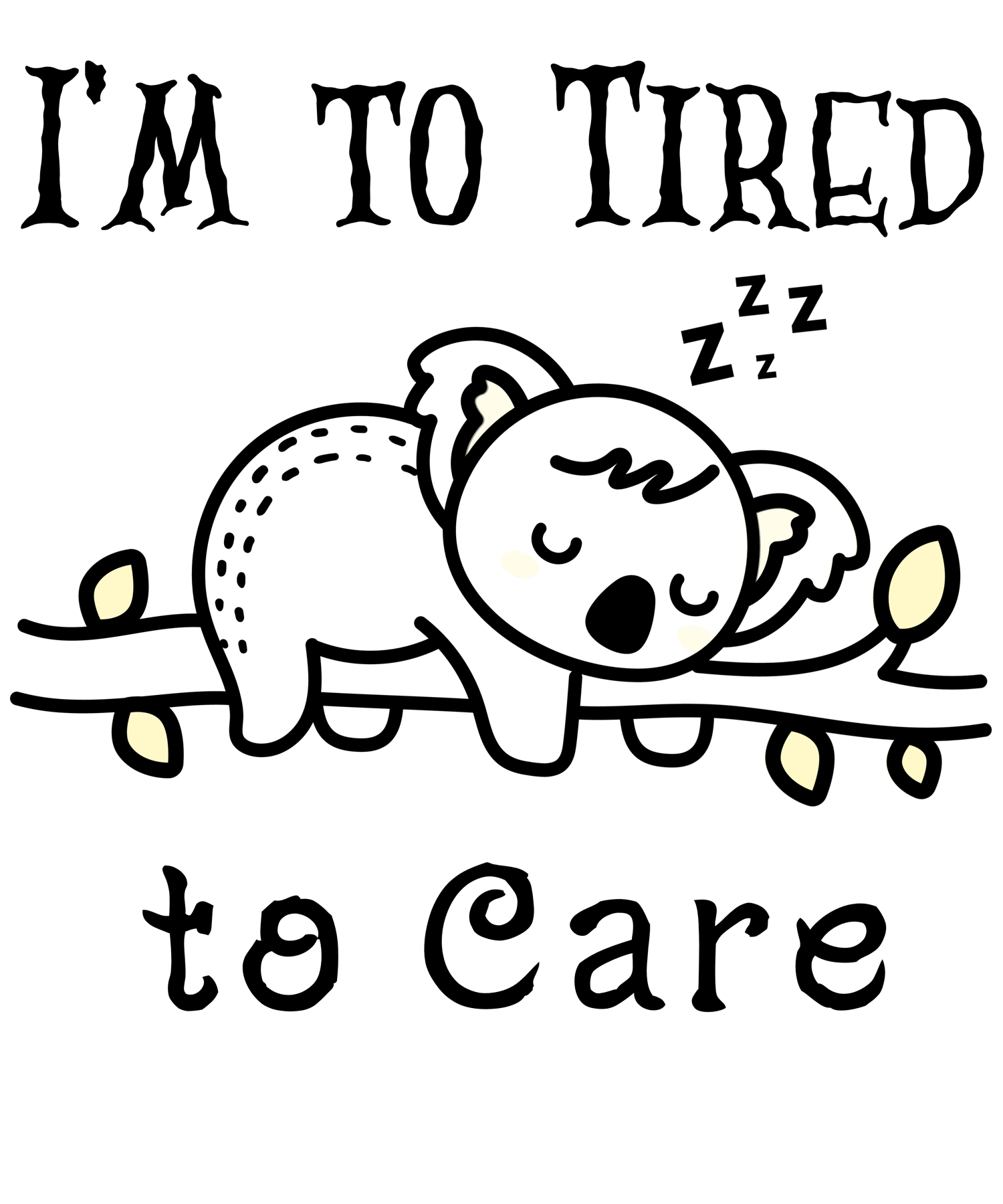 The "I'm To Tired to Care Design Pack" is a playful, charming, and slightly off-kilter collection that expresses your weariness to the world. The intentional omission of the 'o' in 'too' serves as a humorous acknowledgment of how fatigue can affect even the smallest details. This design pack is enjoyable, whimsical, and a tad quirky, yet it remains entertaining. These designs are versatile; they can be printed and framed, or applied to clothing, stickers, and various other items as desired.