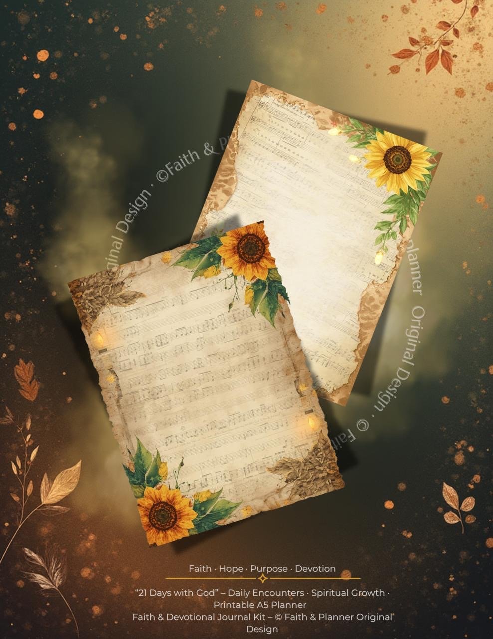 Vintage Sunflower Printable Paper Set – 8 A4 Sheets (16 A5 Designs) | Faith & Gratitude Journal Pages