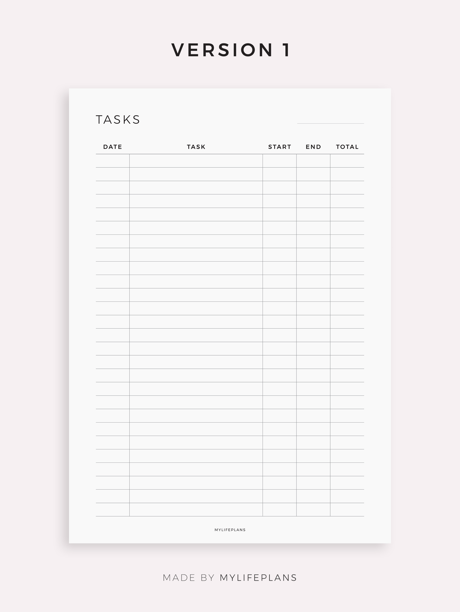 Task Time Tracker Template for Remarkable, Supernote, Kindle Scribe, Boox, Kobo
