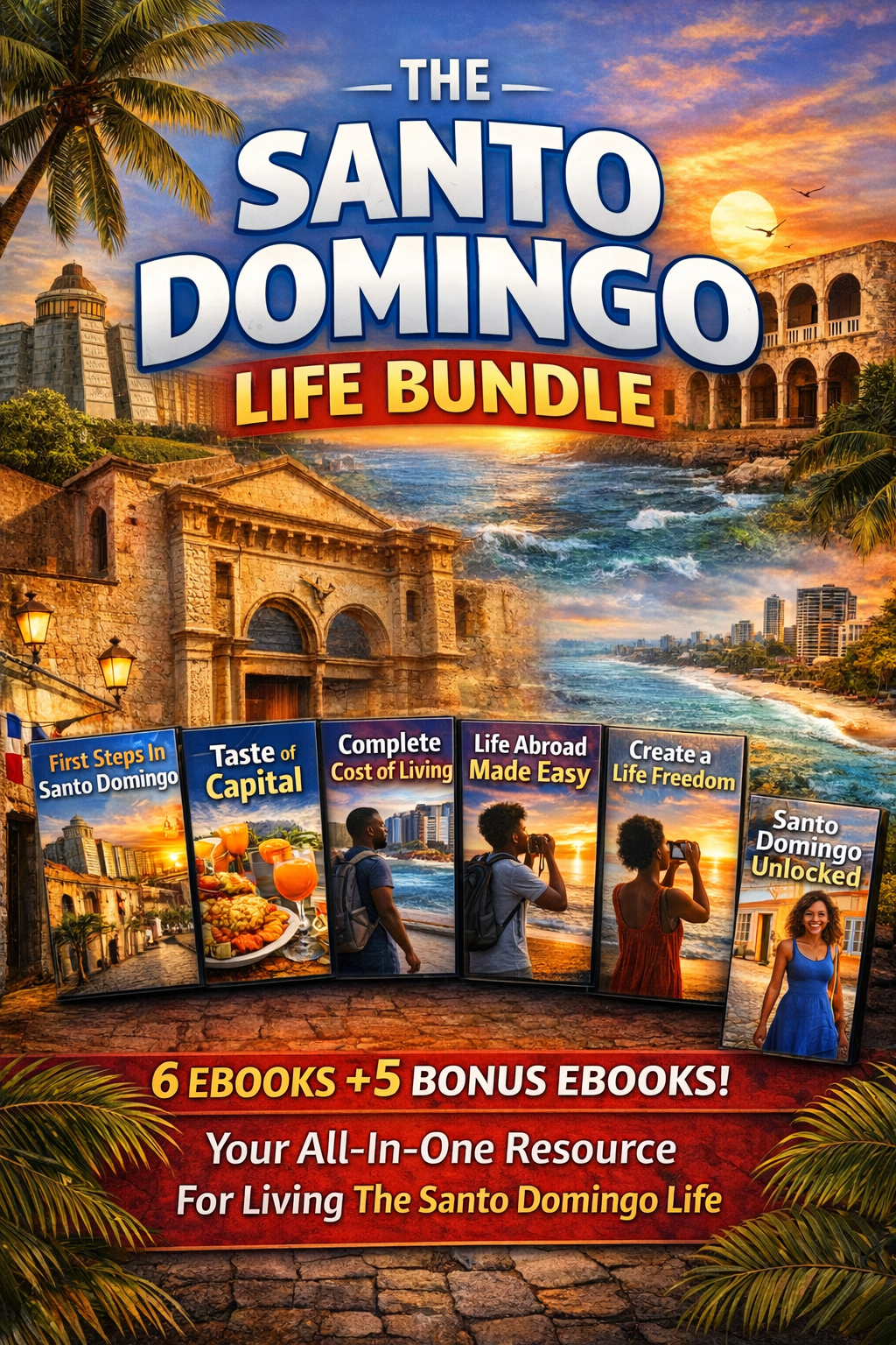 Inside, you will find four powerful ebooks designed to help you confidently navigate the city, discover hidden gems, and fully immerse yourself in the culture, food, nightlife, and lifestyle of Santo Domingo.