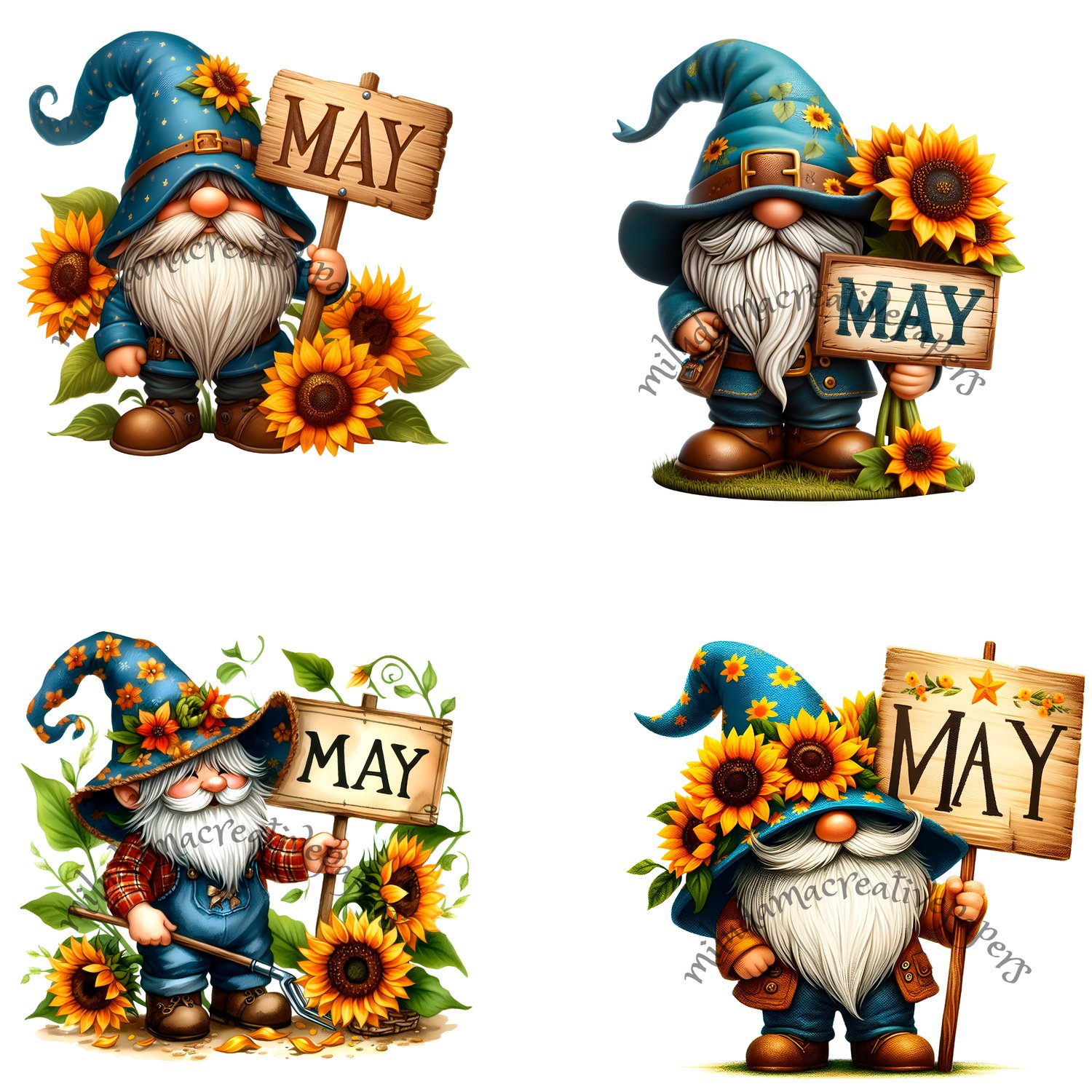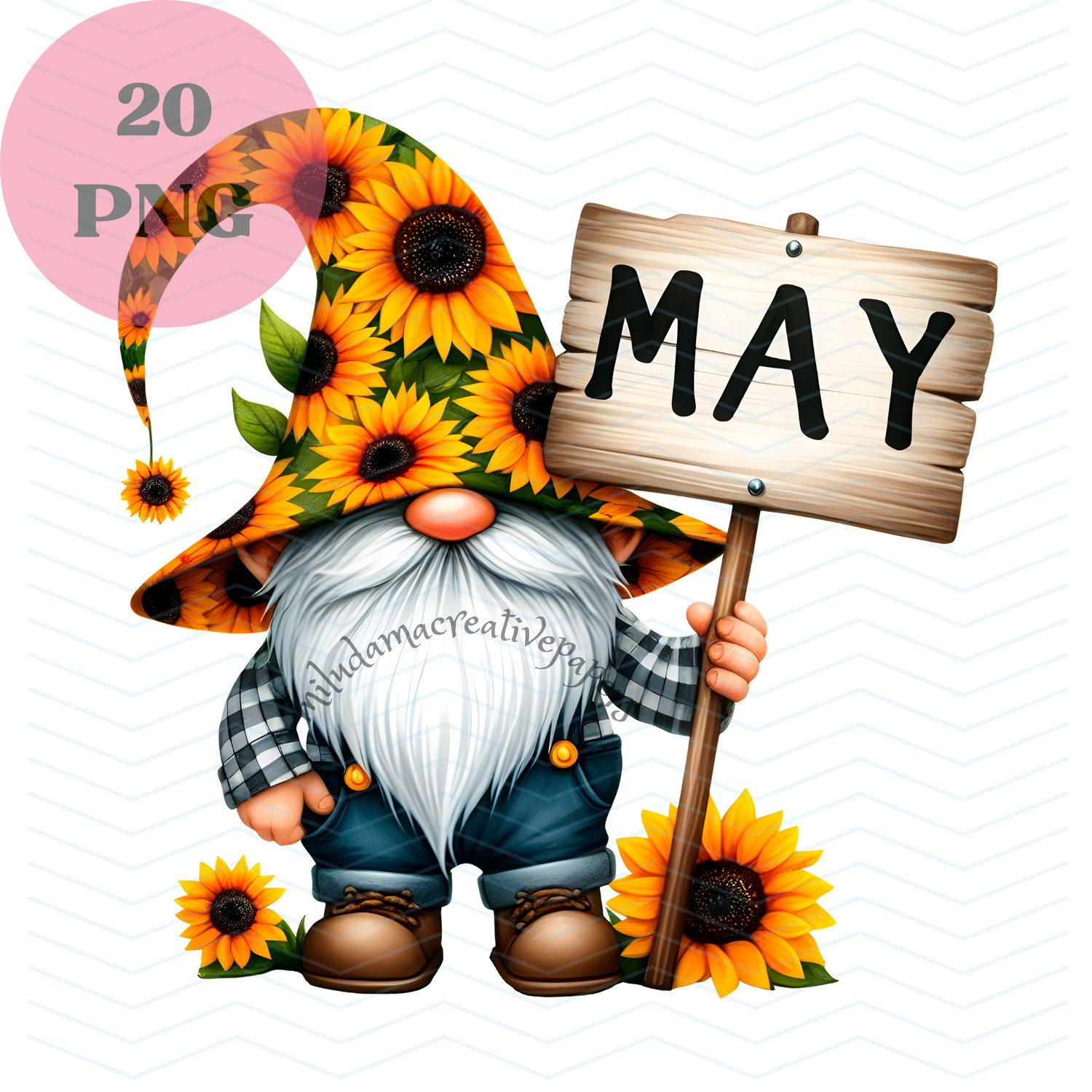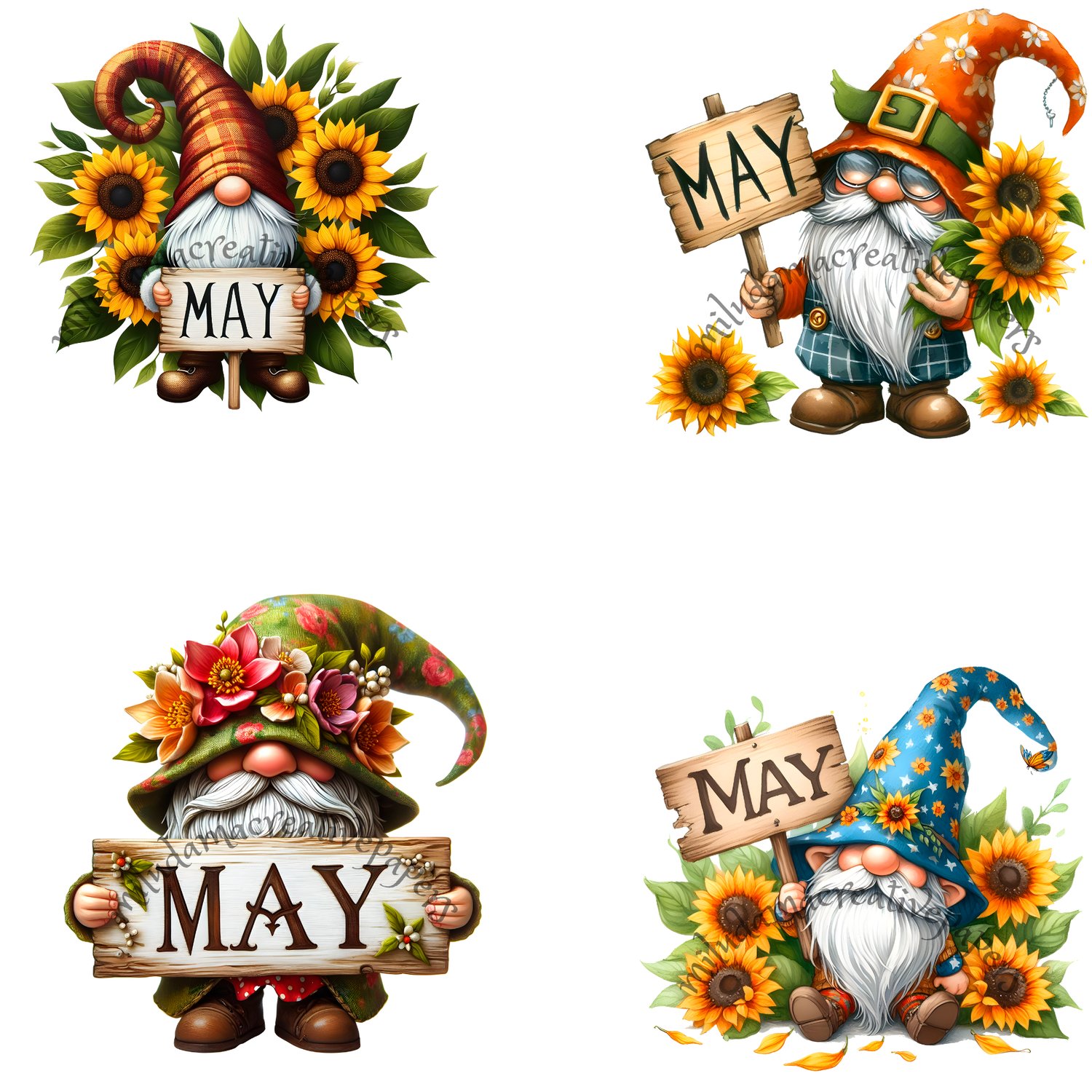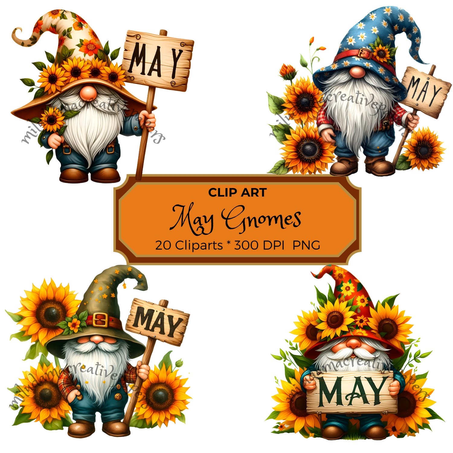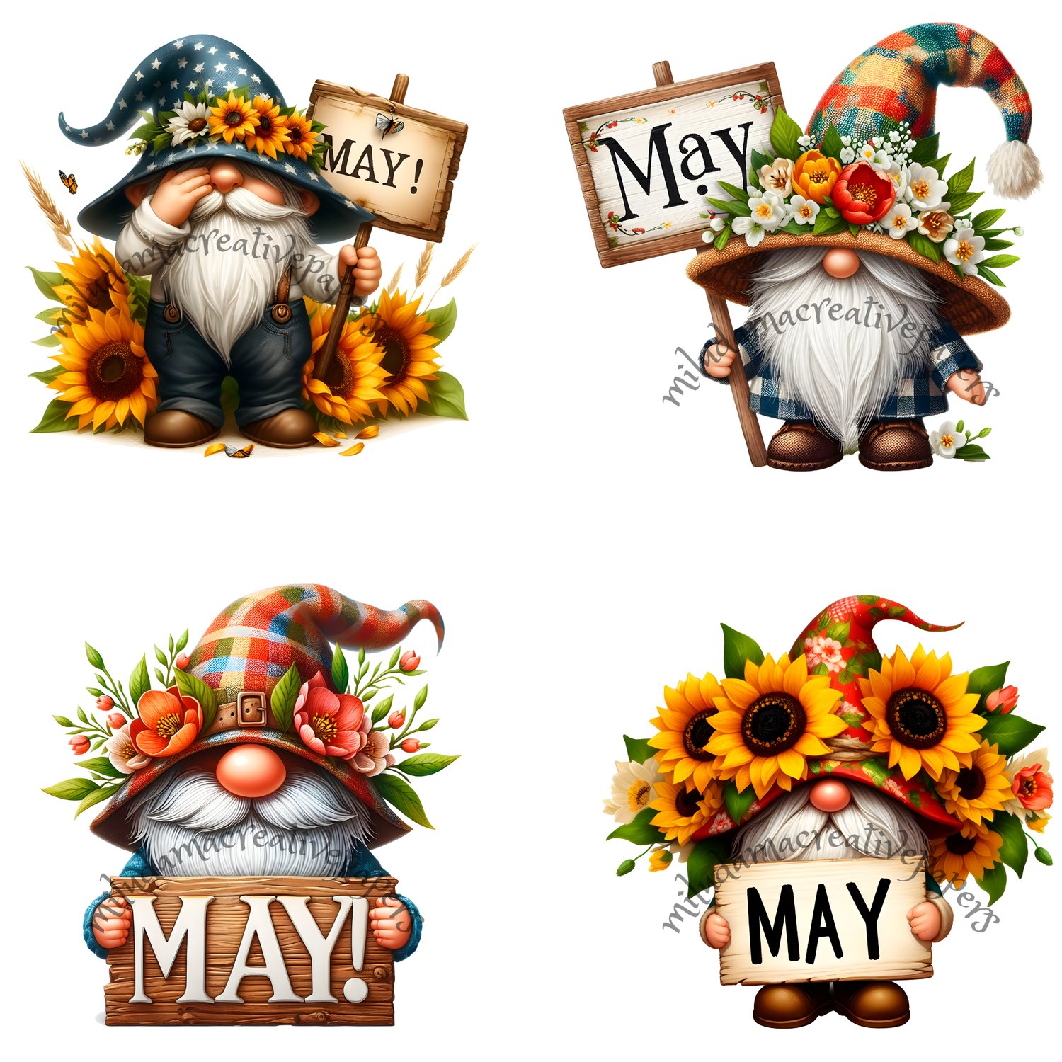 Bring your designs to life with our May Gnomes Clipart Pack!