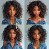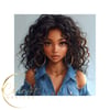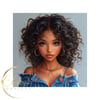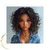 Animated Black/Ethnic Woman 4-Image PNG Bundle, Female Cartoon with Brown Hair & Denim Clothing, Youtube Covers, Social Media, Book Cover Designs, Storytelling