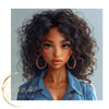Animated Black/Ethnic Woman 4-Image PNG Bundle, Female Cartoon with Brown Hair & Denim Clothing