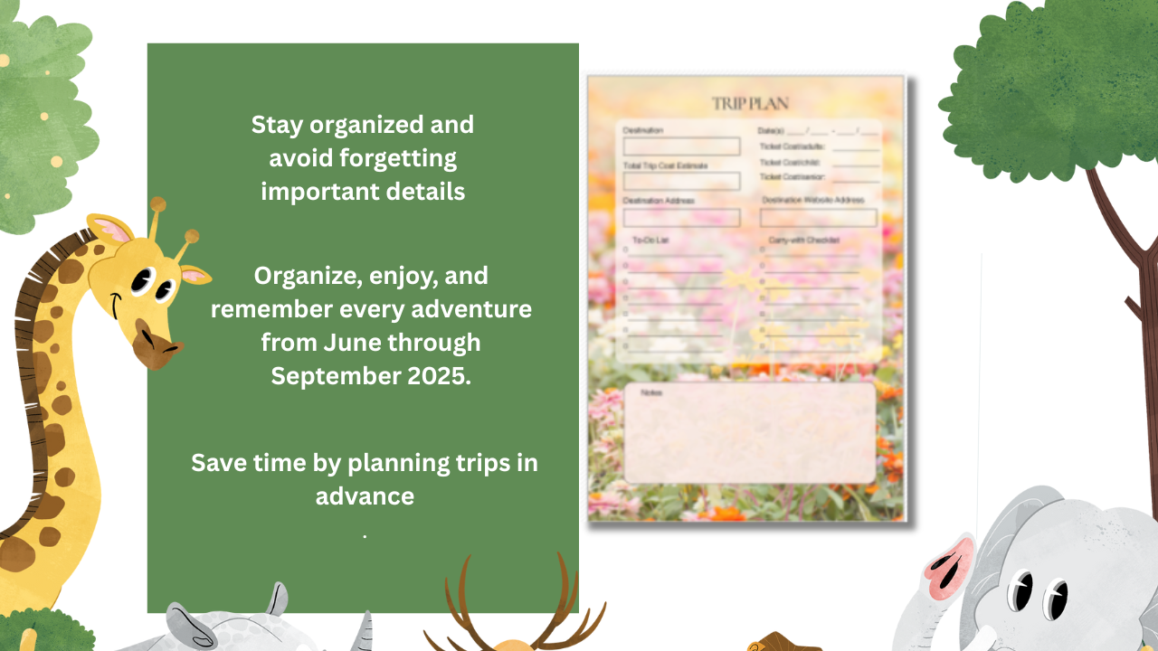 Whether you're planning quick getaways, scenic road trips, or family outings, this planner keeps all your trip details, to-dos, and memories in one easy-to-use place. Say goodbye to last-minute scrambling and hello to stress-free, fun-filled summer days!