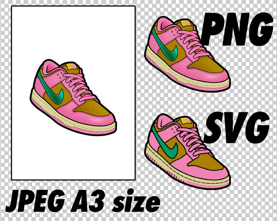 Digital Sneaker Art downloadable files in JPEG, PNG, SVG.