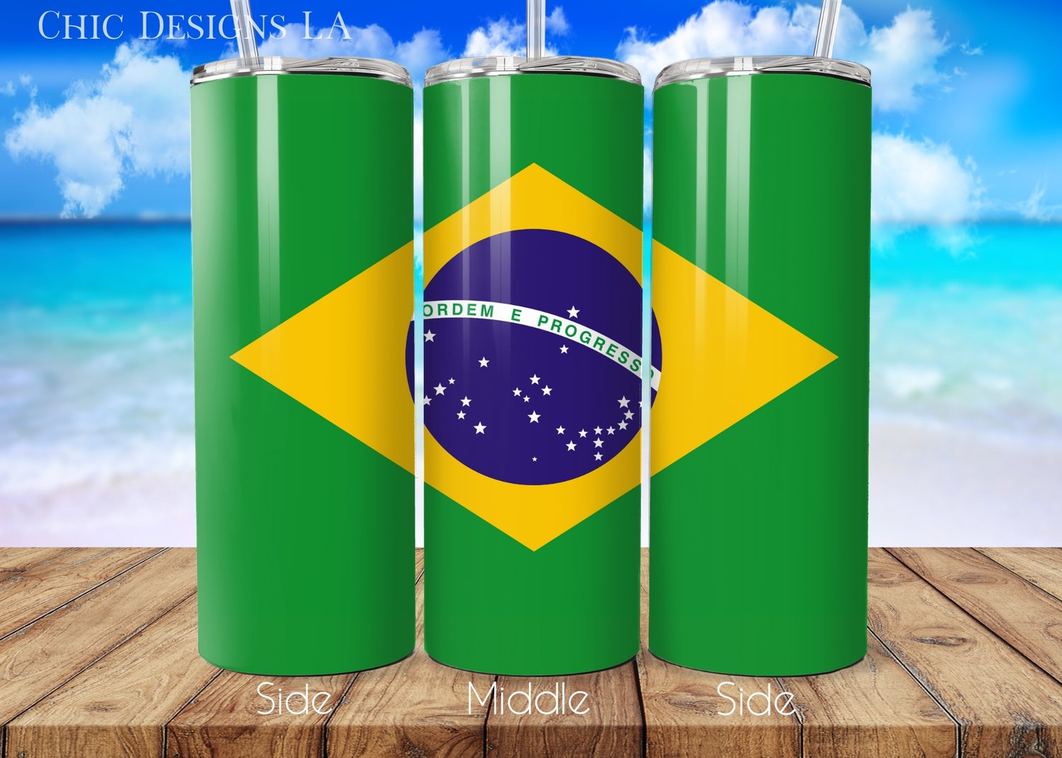 Flag of Brazil Tumbler Wrap Design, Instant Download, Brasilia Png Tumbler Wrap, South American Countries, 20oz Tumbler Wrap, South American Flags