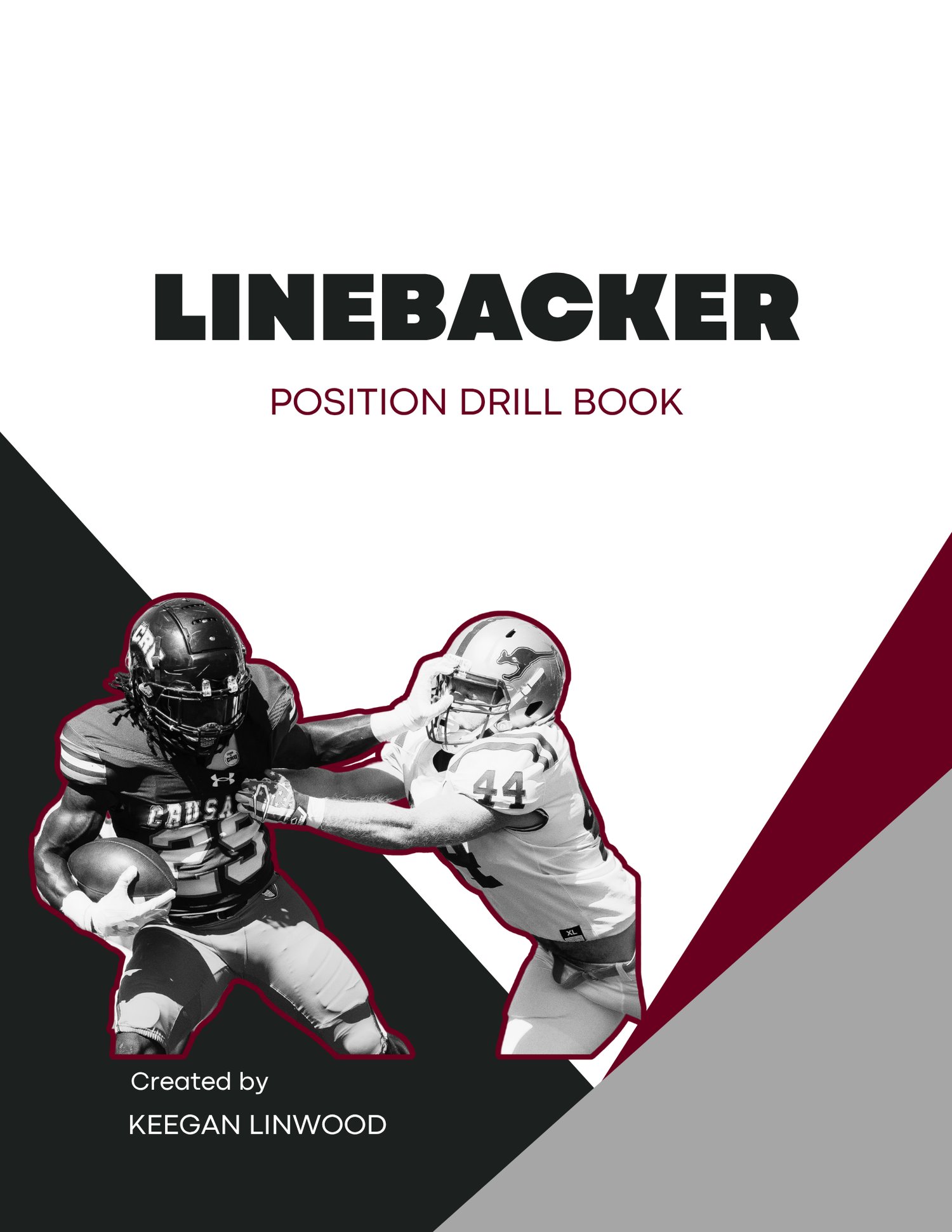 Linebacker Drill Book with comprehensive drills and progressions to help you get better. Drills shown are modified from my coaching experience at Kent State (FBS), Bluffton (D3), Minnesota (Big 10), and Canadian Football. This resource will help you hone your craft and improve your game!