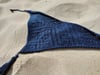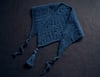 This is an advanced lace pattern triangle-shaped bandana with ties, perfect for summer. Constructed from the tip at the bottom, it grows with each row, with an intricate lacy detail built on every row.