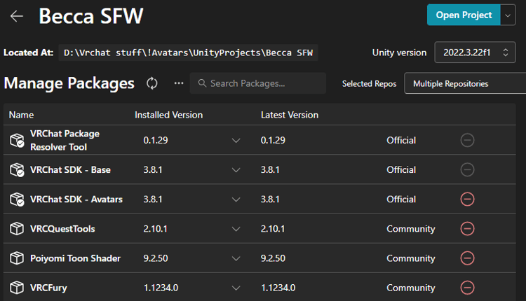 Make a new avatar 2022 project in VCC -> Add Quest Tools + Poiyomi Addon + VRCFury -> import Avatar Unity File