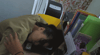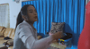 She is tied to a chair and can't move her arms