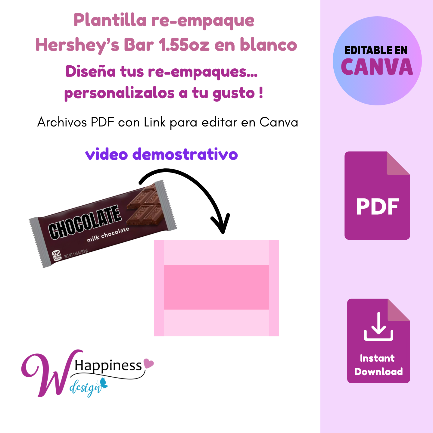 ¡Haz que cada detalle de tu evento sea especial con estos empaques personalizados para barras de chocolate Hershey’s! 🍫🎨 Diseñado para que puedas editarlo fácilmente, este archivo incluye: