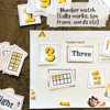 * Number match ( Word, Tally marks, ten frame, visual objects cards)