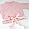 Pirouette is the perfect classic ballet wrap cardigan, with dainty elbow length sleeves and an elegant picot edge detail. Finished off with satin ribbon ties, the opulent bow at the back will have anyone feeling like a prima ballerina.