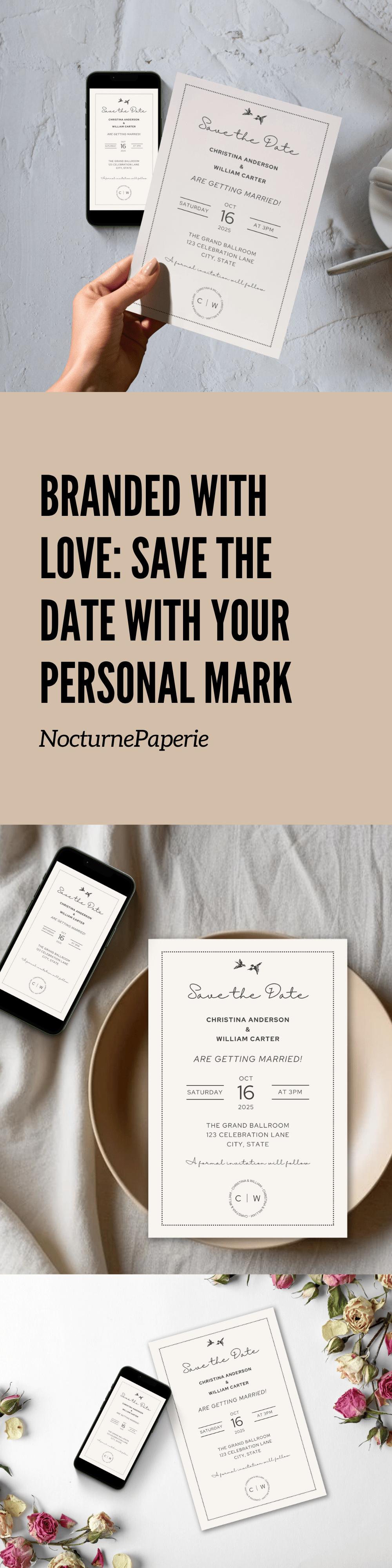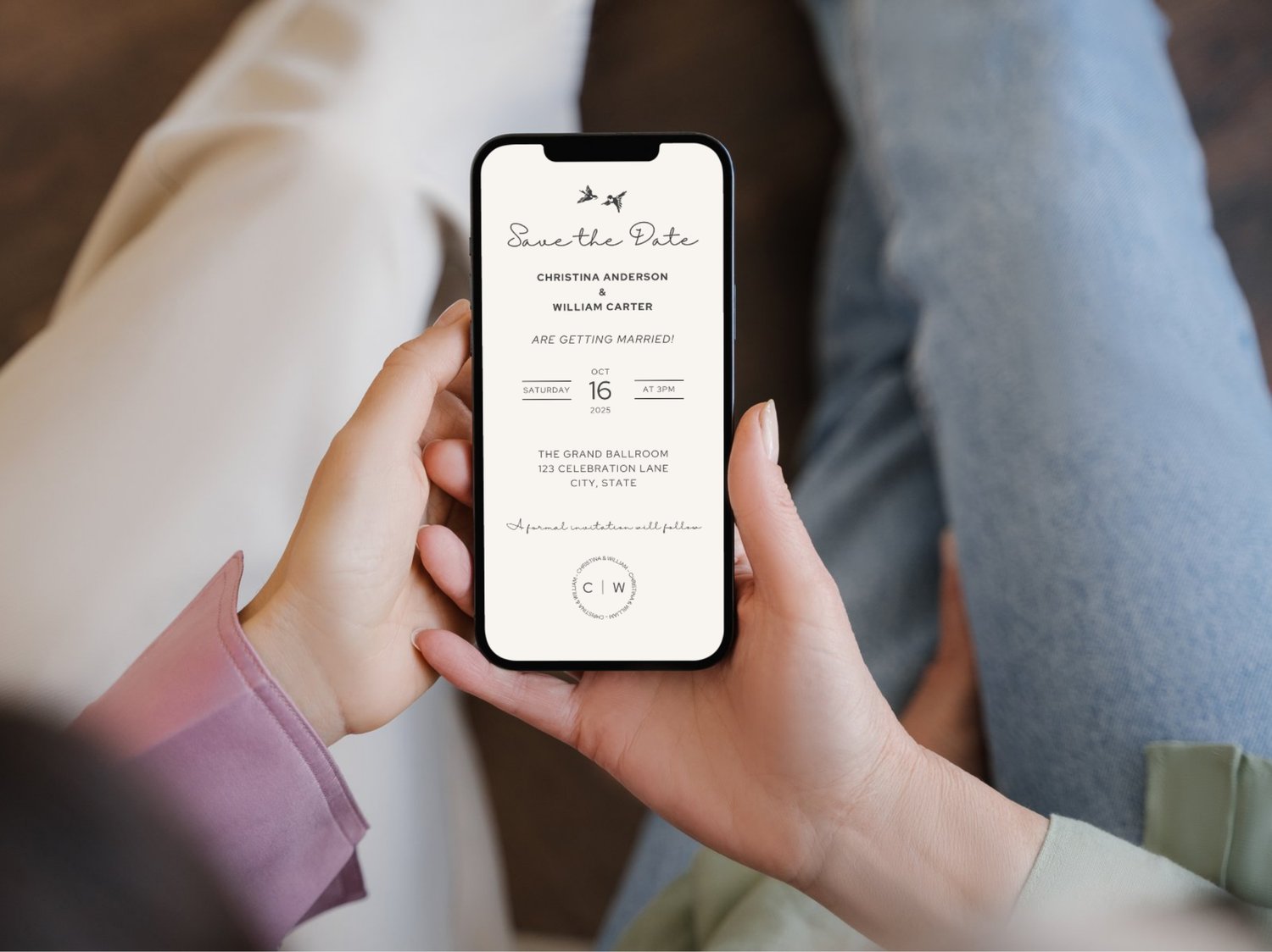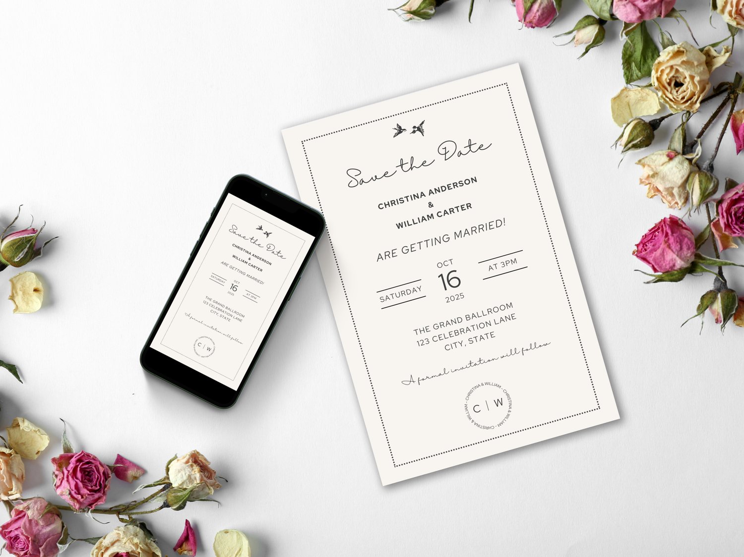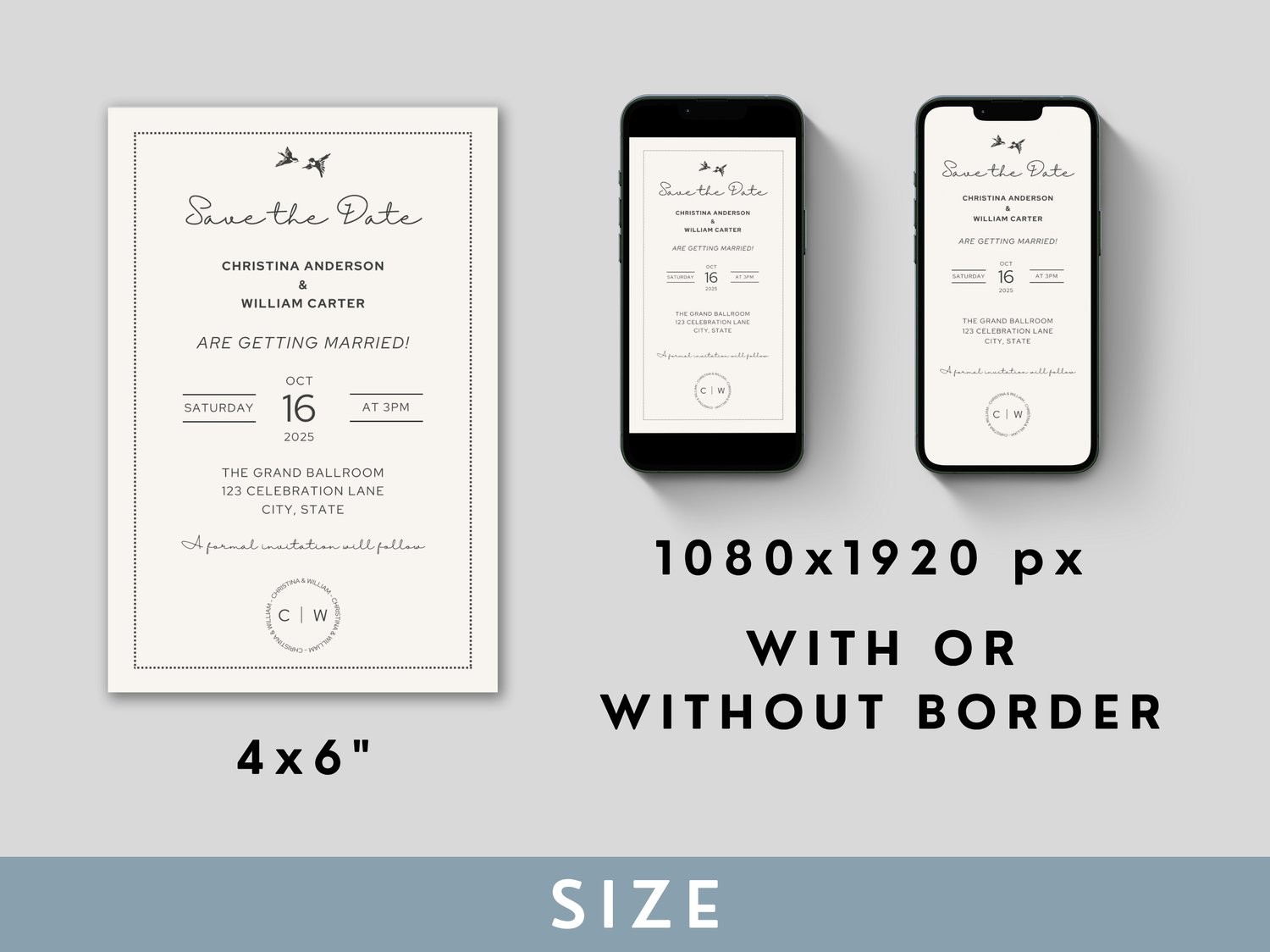 Lovebird Save the Date Digital Invite Editable Canva Template Monogram Electronic Announcement Printable Card for Modern Wedding Decor 010
