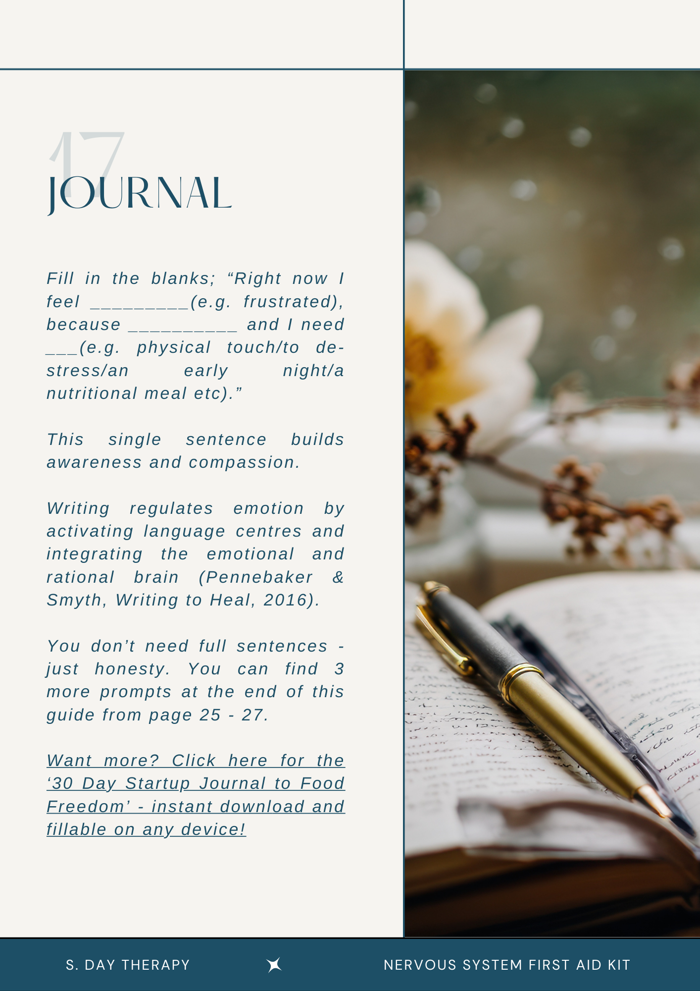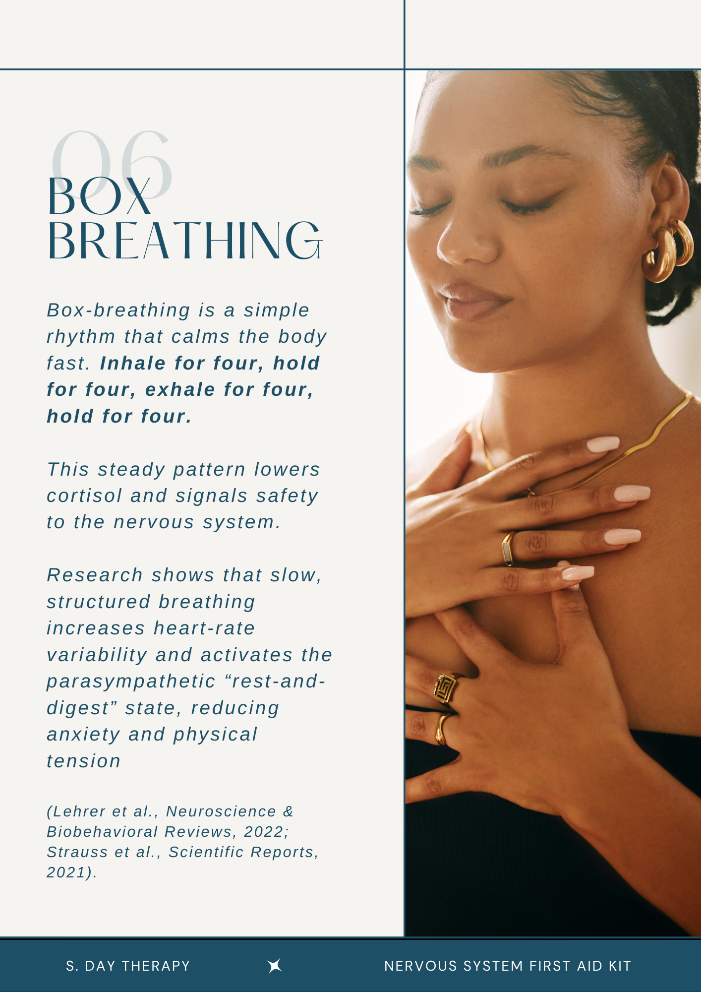 This Nervous System First Aid Kit gives you 20 simple, science-backed tools to help you feel calmer, grounded and more in control. You’ll learn practical, gentle techniques - each explained in clear language so you can use them immediately - even on the days when everything feels too much.