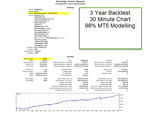 Operates by monitoring the movement & volatility of the DAX40 during market hours only, once it detects a strong move it will latch onto the momentum and open a trade at the start of the next bar, (on the 15 min bar on 15 min chart, start of 30 min bar on 30M chart and same for 1 hour).