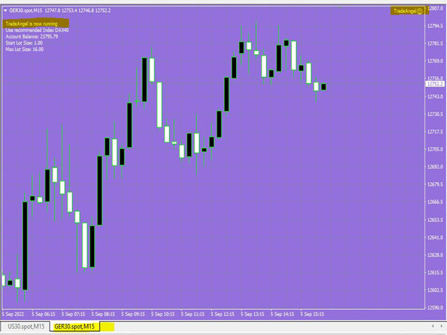 TradeAngel logic works on our own proprietary indicators called angel factor/period (you will see this in inputs). Trade Angel Works in 3 time charts at same time: 15M, 30M and 1 hour.