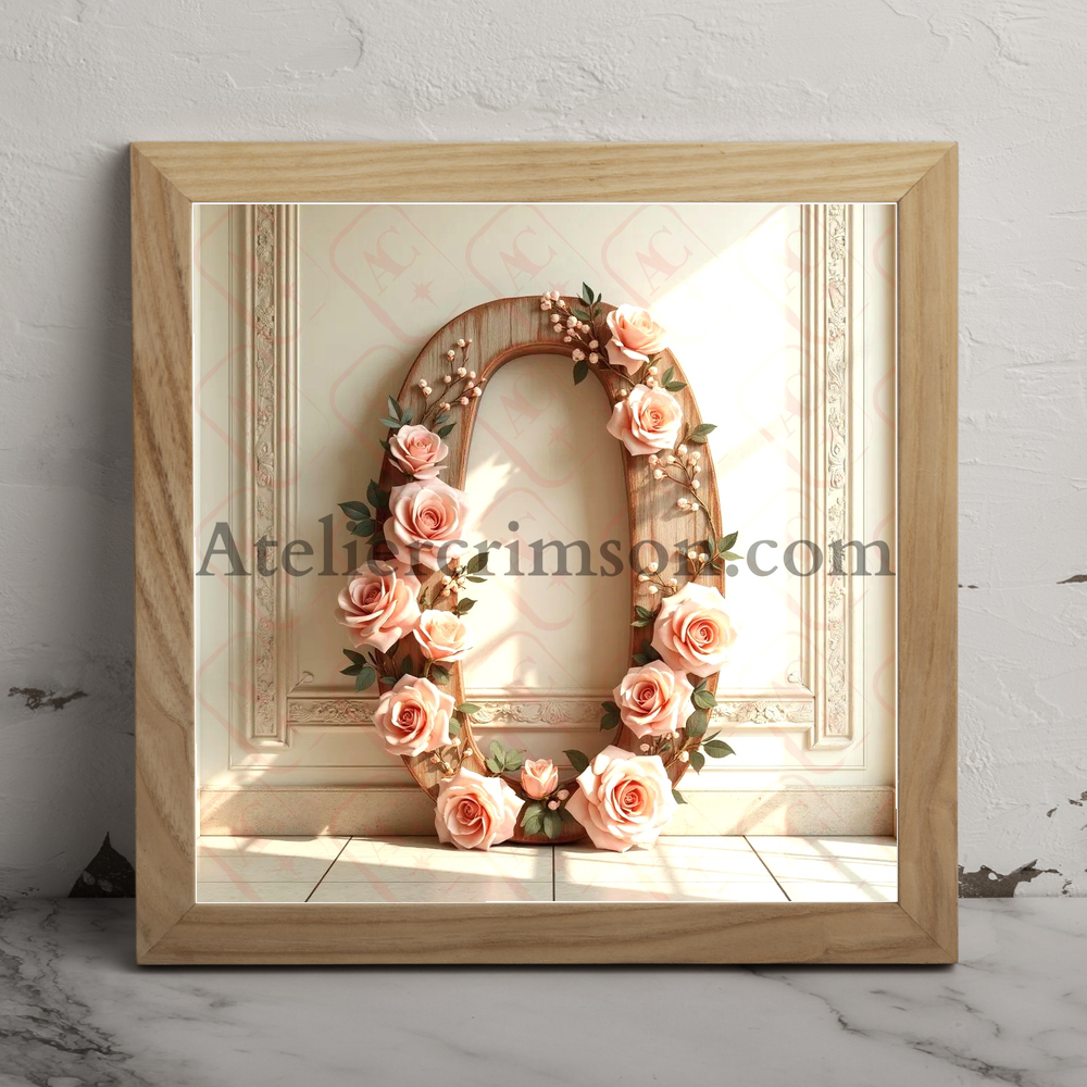Number 0 soft beige wood and flowers Download now this AI-generated image of an elegant, mid-century style character crafted from wood with a soft, neutral background with geometric pattern. Nostalgic and elegantly worn atmosphere.