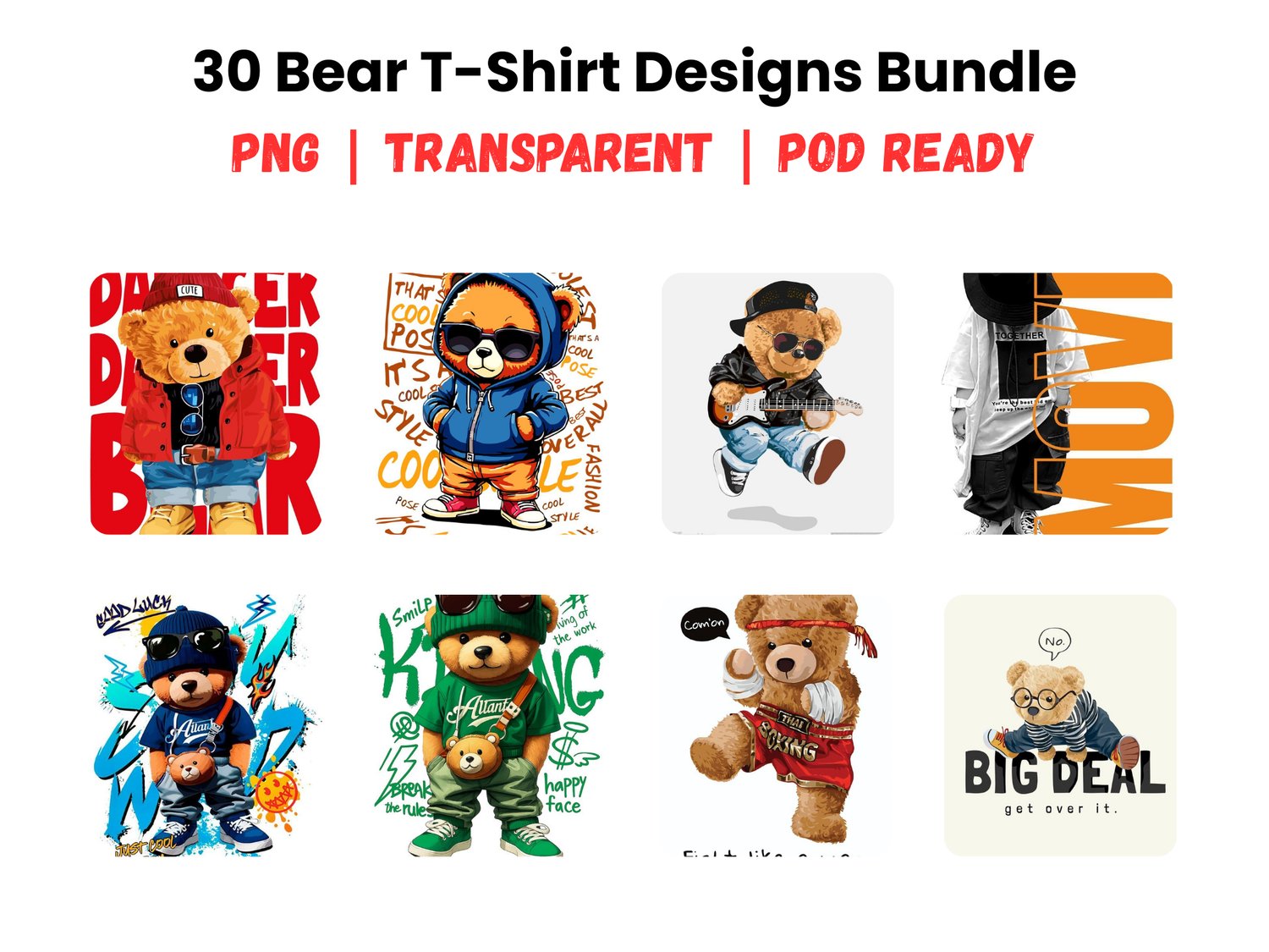 30 Bear T-Shirt Design Bundle – Cute & Creative Bear Graphics for Print-on-Demand