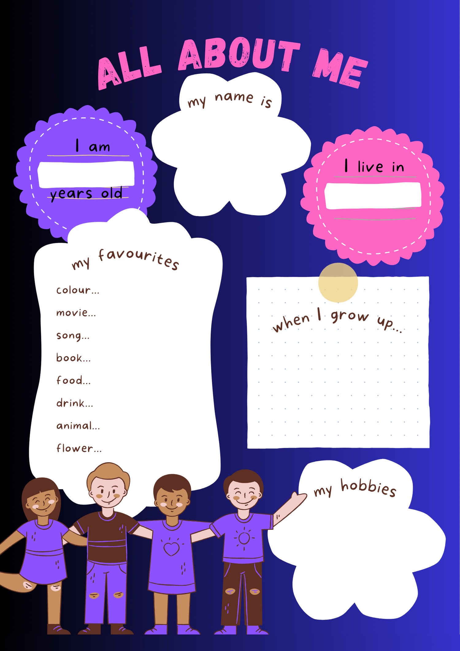 - Personalized Prompts: Kids can fill in their name, age, hometown, hobbies, and dreams for the future.