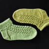 River Idle is knitted from the top down, starting with a crochet provisional cast-on and picot edge. The sock is worked with a lace border on the leg. The ripple lace pattern on the instep can also be used as an option to give a longer leg length. Information is included to allow adjustment of the length of the Eye of the Partridge slip-stitch heel flap for a good fit at the heel and in the gusset section.
