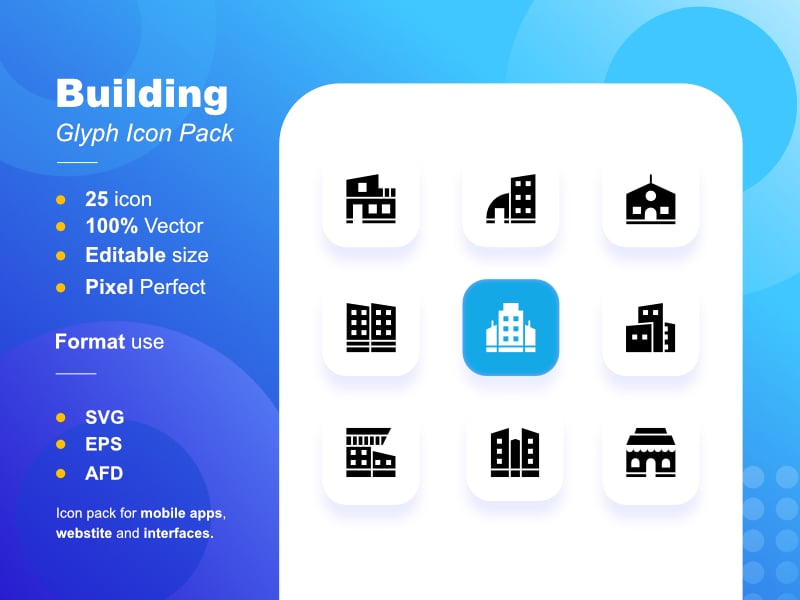 Building icon pack comprises 25 stylish icons.