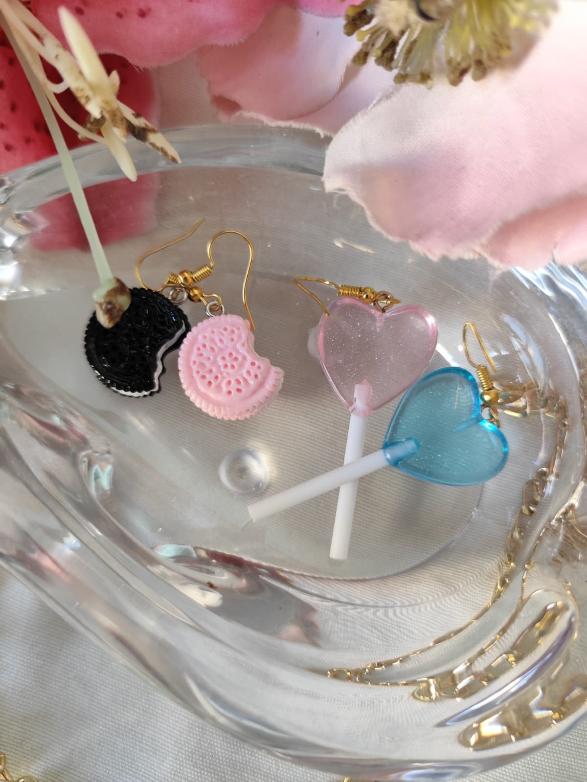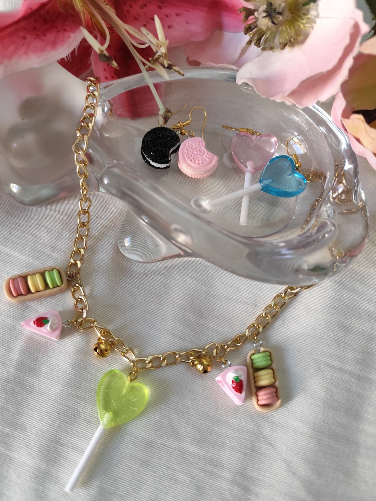 ¡Aprovecha la oferta! Los collares y pendientes en promoción, ideales para darle un toque especial a tu look. Ten en cuenta que algunos productos ya se han agotado: el collar de tartitas y los pendientes de Oreo no están disponibles ya que son productos únicos, pero aún puedes disfrutar de las demás opciones en oferta.