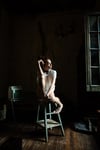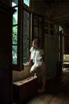 The series explores the body as a form within space — quiet rooms, aged furniture, soft gestures.