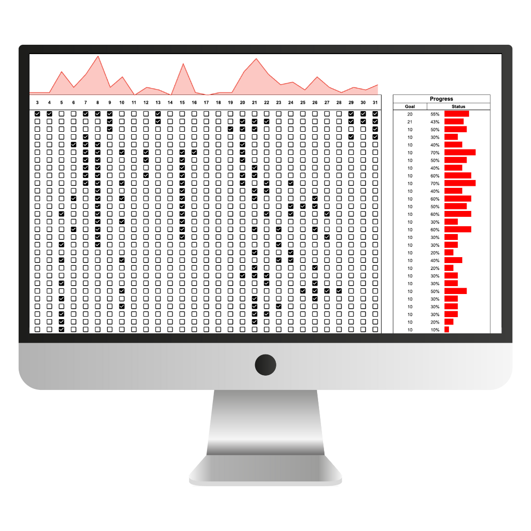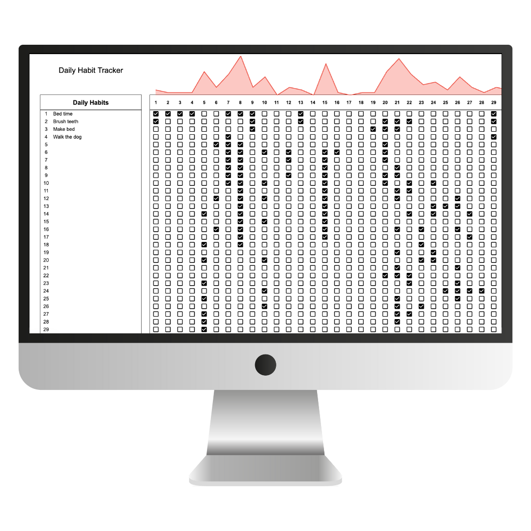 The Daily Habit Tracker is a single-page spreadsheet that is designed to help start and track of habits each month. It's easy enough that ANYONE can use it, but useful in it's simplistic design. With it, your audience can: