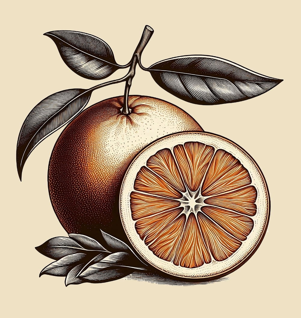 - Line Art: Elegant black and white line drawings of oranges, offering a minimalist yet detailed aesthetic for logos or icons.