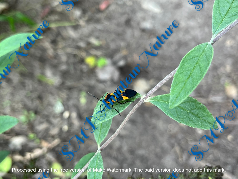 Amateur photograph of a Large Milkweed Bug (Oncopeltus fasciatus) on a leaf. Image taken in Virginia, USA. Image pixels 3024x4032. Image easily resized as required for buyer needs. Purchase gives image without any watermark.