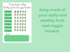► Keep track of your daily and weekly fruit and veggie intake. Make sure that you have 5 servings of fruits and veggies a day.
