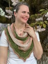 Nature bursts into light with pops of vibrant green and buds of color as spring begins. With the gentle breeze, dappled light, and slowly warming temperatures beaconing us to explore the wonders of nature. First Light Cowl is inspired by one of my favorite seasons, spring. One of the most colorful seasons bringing life to the world after its winter slumber.