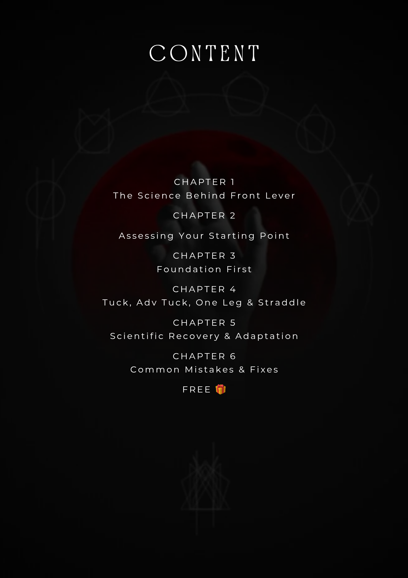 Struggling to achieve your front lever? This eBook gives you a complete roadmap to build the strength and control you need.
