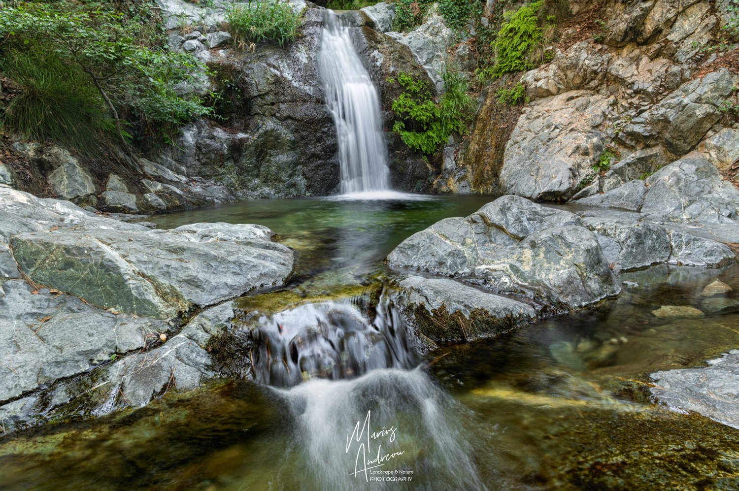 A silent sentinel of stone stands watch over a tranquil pool, as the soft, ethereal flow of the Chantara waterfall cascades behind it. 'The Guardian Stone' captures a secluded moment in the heart of nature, where the smooth, long-exposure water creates a beautiful contrast with the rugged, textured rocks. The image's rich, earthy tones and delicate light invite a sense of peace and contemplation, making it a perfect window to a hidden oasis in the Troodos Mountains.