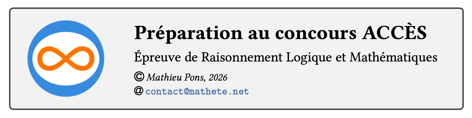 Message important à lire avant d'acheter : veuillez noter qu'un e-book est un livre édité et diffusé en version numérique, disponible sous forme de fichiers qui peuvent être téléchargés et stockés pour être lus sur un écran. L'ensemble des fichiers disponibles dans le Pack PrépaMath ACCES sont des e-books et aucune version papier ne sera envoyée à votre domicile à l'issue de l'achat.