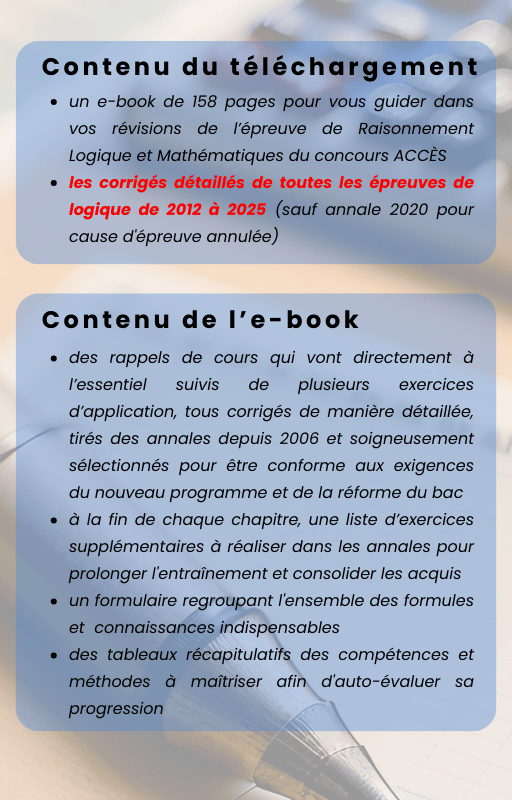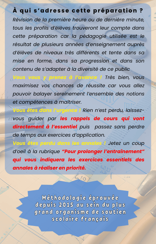 - les corrigés détaillés des annales de 2012 à 2025 (sauf annale 2020 pour cause d'épreuve annulée) ;