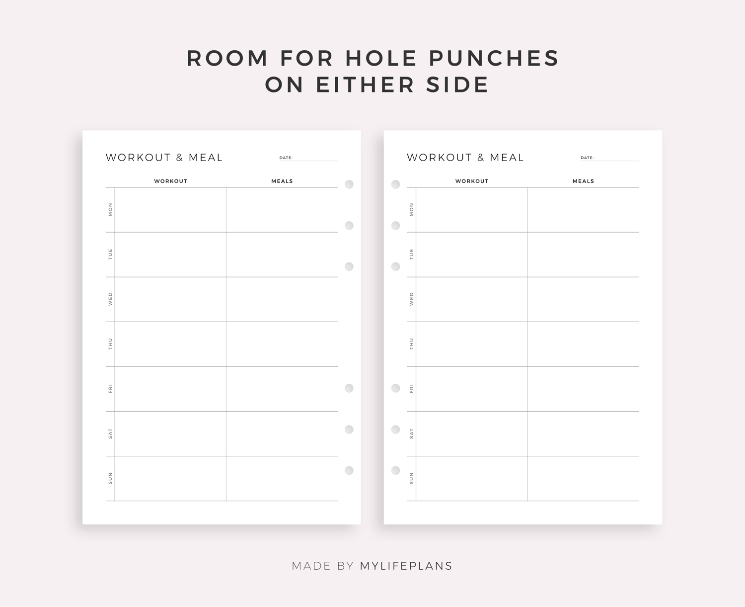 Weekly Workout & Meal Planning, Printable & Fillable Template, A4/Letter Size