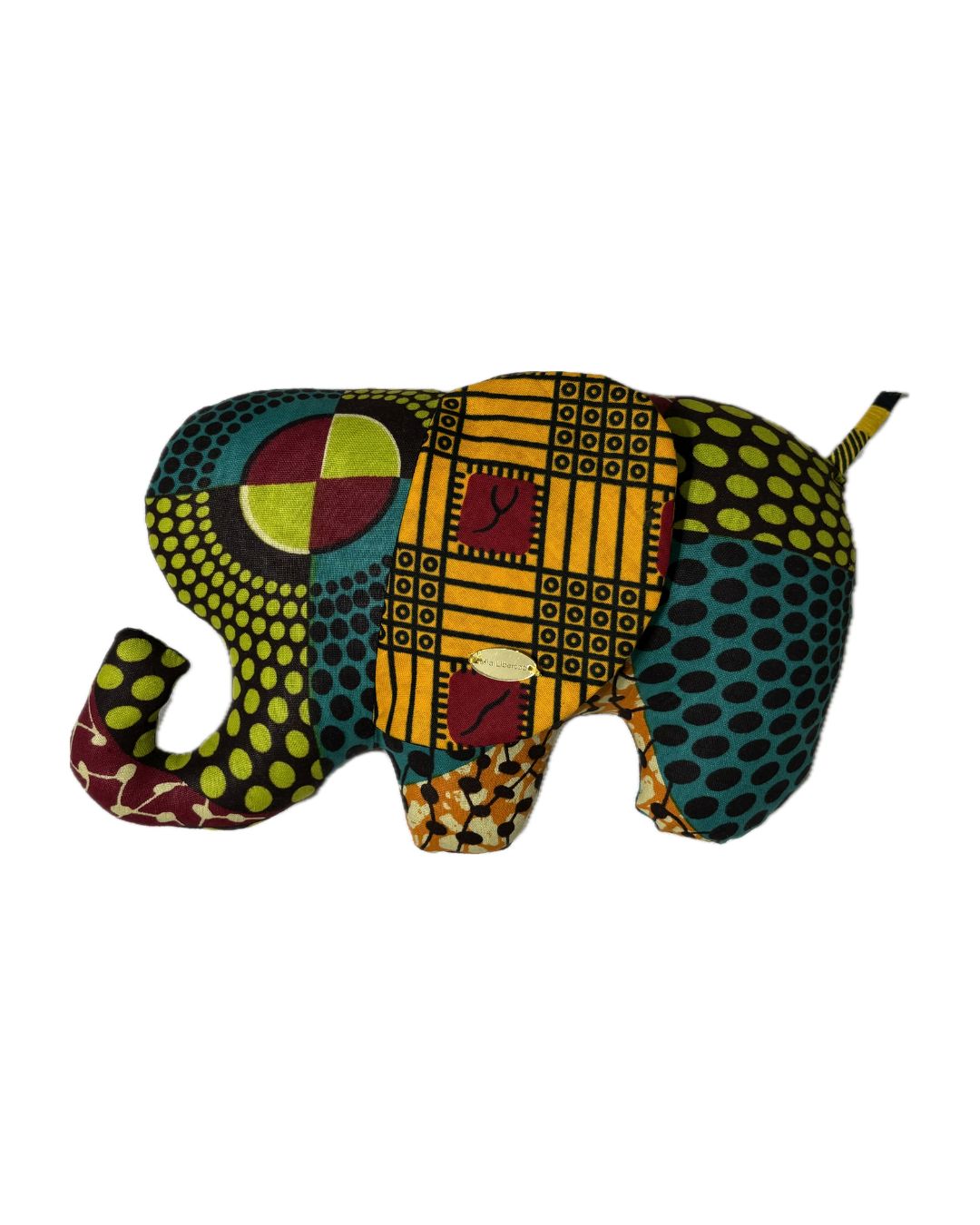 El cuerpo de la elefanta es confeccionada en tela de diseños africanos.