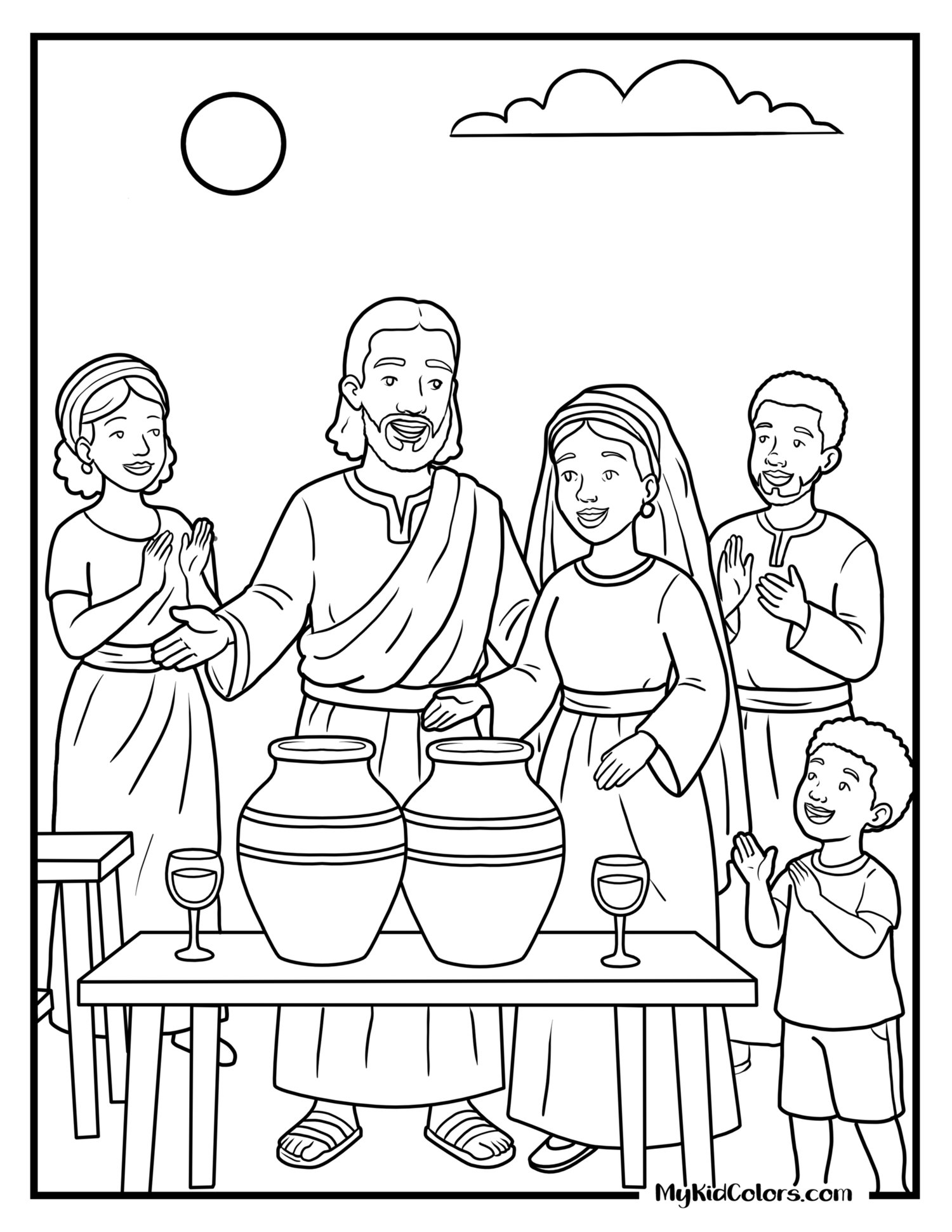 - The First Miracle: A joyous celebration where Jesus turns water into wine, featuring beautifully illustrated brown-skinned wedding guests.