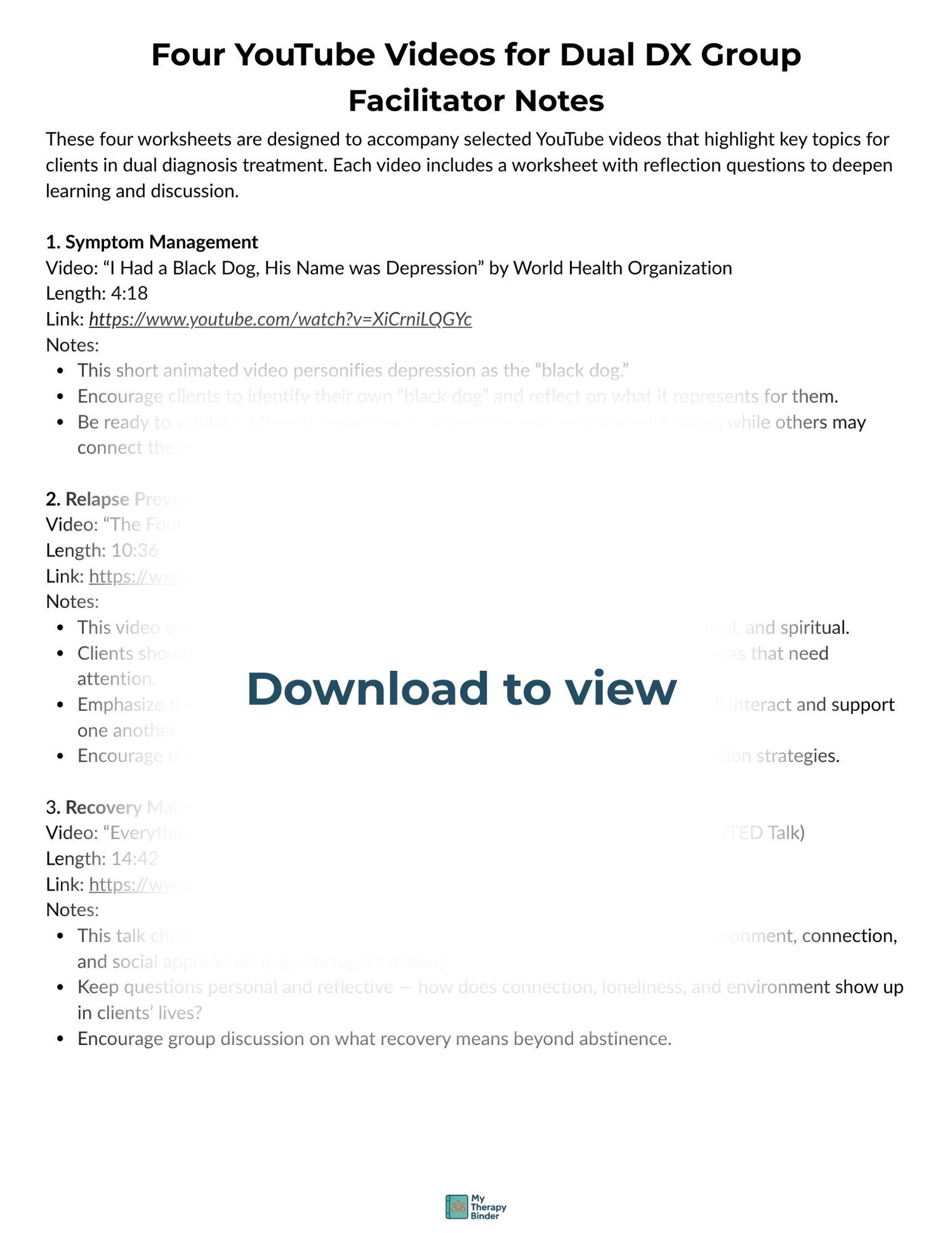 Four YouTube Videos for Dual Dx Group – Worksheet & Facilitator Notes Bundle