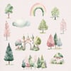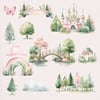A collection of whimsical watercolor illustrations featuring castles, trees, and more. Perfect for adding a touch of magic to your digital and physical projects