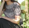 Intersecting is a top-down, yoked tee that features eye-catching colourwork around the shoulders, creating a geometric pattern that is later echoed above the sleeve cuffs and waistband. Short row shaping is incorporated into the yoke and upper body, and this, combined with the fingering weight yarn and positive ease, ensures a comfortable, draped fit.