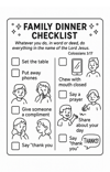 - Family Dinner Checklist (prayer, gratitude, listening, helping)