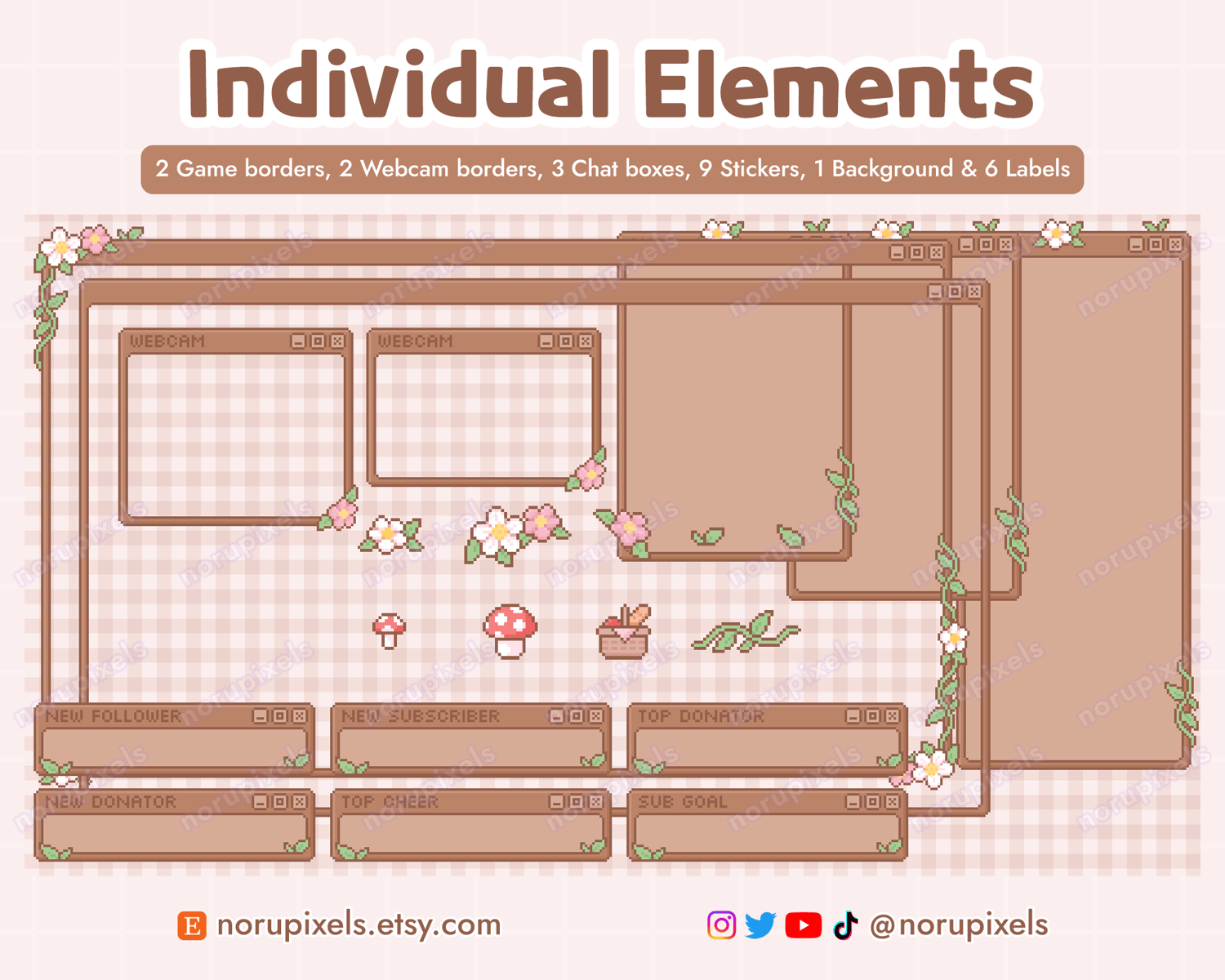 - Individual elements from overlay: 2 game borders, 2 webcam borders, 3 chat boxes, 9 stickers, 1 background & 6 labels (.PNG format & transparent backgrounds)