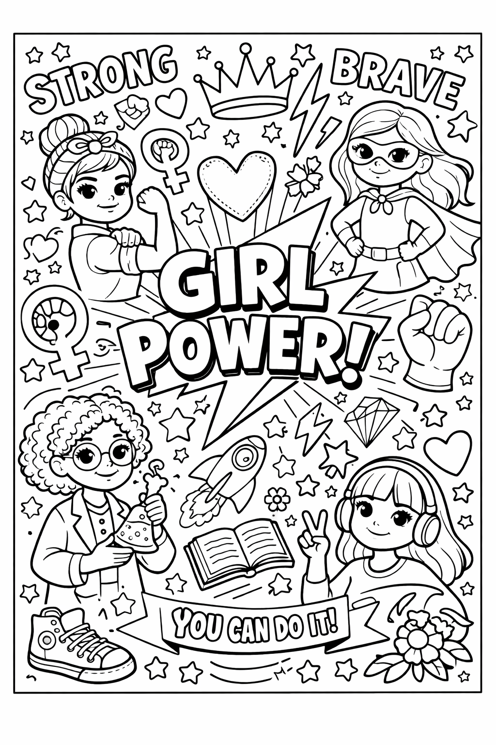 Celebrate strength, courage, and confidence with our Girl Power coloring page! Designed to inspire girls of all ages, this printable features diverse, powerful young women surrounded by empowering words like Strong, Brave, and Smart. Perfect for classrooms, home activities, and empowerment events, this page reminds every girl that she can do anything she sets her mind to.