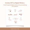 • Reflection pages for trip highlights, travel diary, photo memories, and past travels