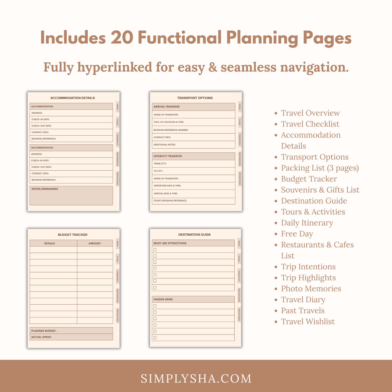 With a clean, minimalist layout, this planner helps you stay organized and stress free while planning, traveling, and documenting your trips.