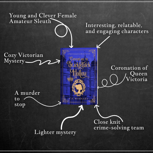 If you like historical mysteries with a cozy flair, unexpected twists and murder conspiracies, you’ll love C.S. Woolley’s captivating series.
